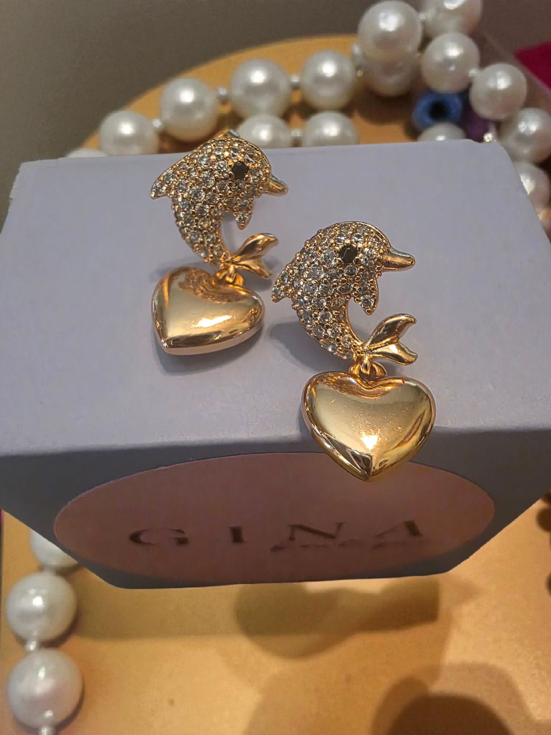 Add a touch of charm with these Earrings Dolphins in rose gold. Featuring a playful dolphin design adorned with sparkling cubic zirconia heart accents, they brighten any look with subtle elegance. Perfect for everyday wear or special moments, these earrings blend fun and sophistication effortlessly.